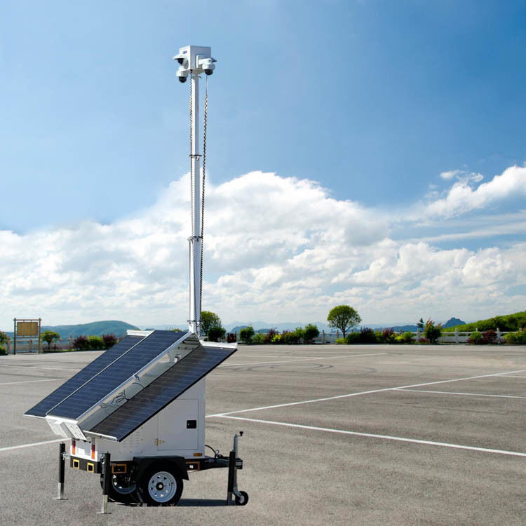 3. Design del rimorchio mobile portatile: il rimorchio di sicurezza può essere trainato in qualsiasi posizione del parcheggio che necessita di essere monitorata in qualsiasi momento.